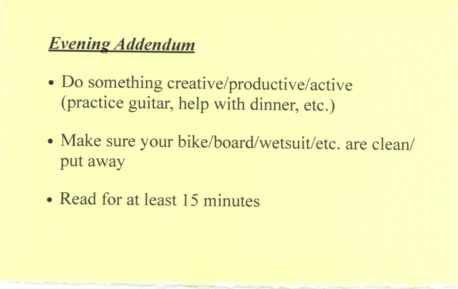 And finally, I’ve added in what I think of as a late afternoon re-boot, to force them to get involved in end-of-day household recovery as well: